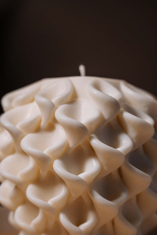 Ogni candela è unica, realizzata con cura artigianale per diventare un elemento decorativo affascinante. Il delicato colore avorio e le forme creative si fondono in armonia nella morbida texture della cera di soia, creando un'atmosfera avvolgente e un tocco distintivo per il tuo spazio.
